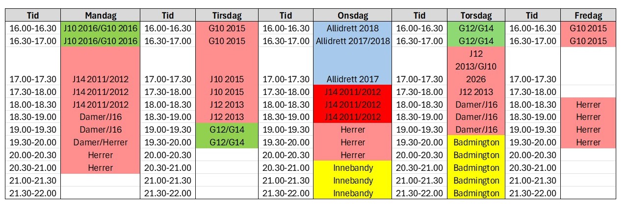 Treningstider Sesongen 2025/26